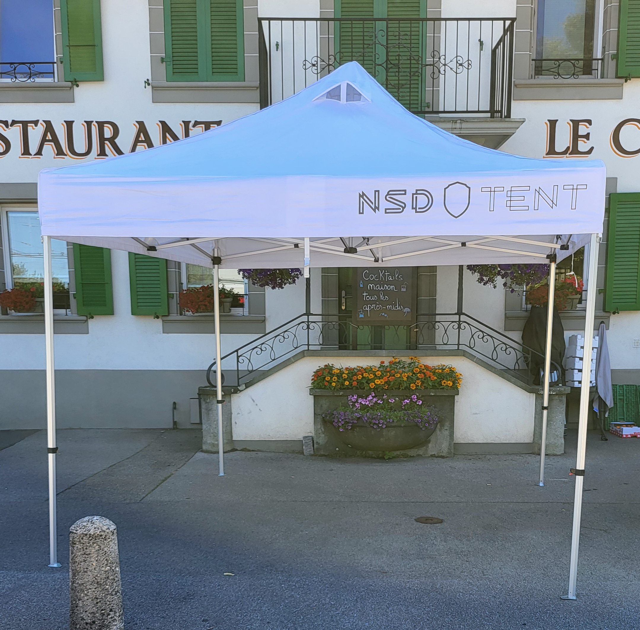 Nous vous conseillons d’utiliser des poids de lestage afin de maintenir au maximum votre barnum au sol.